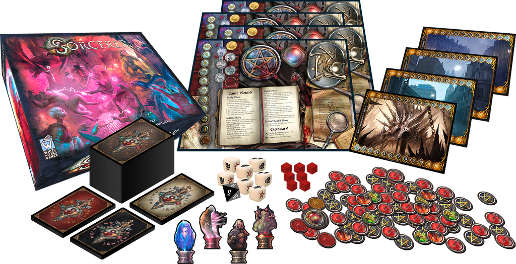 Sorcerer is a 2-4 player dark fantasy game from the creators of Star Realms. It combines the best elements of a strategy card game and a tactical board game to create a whole new play experience!