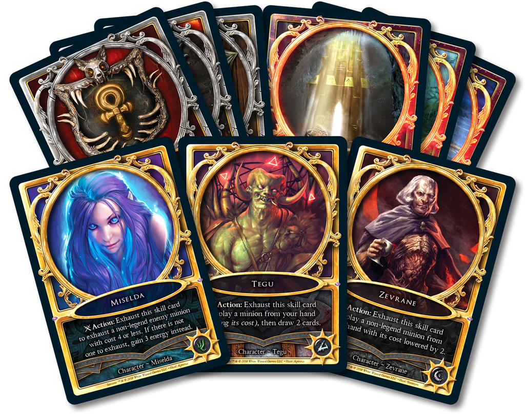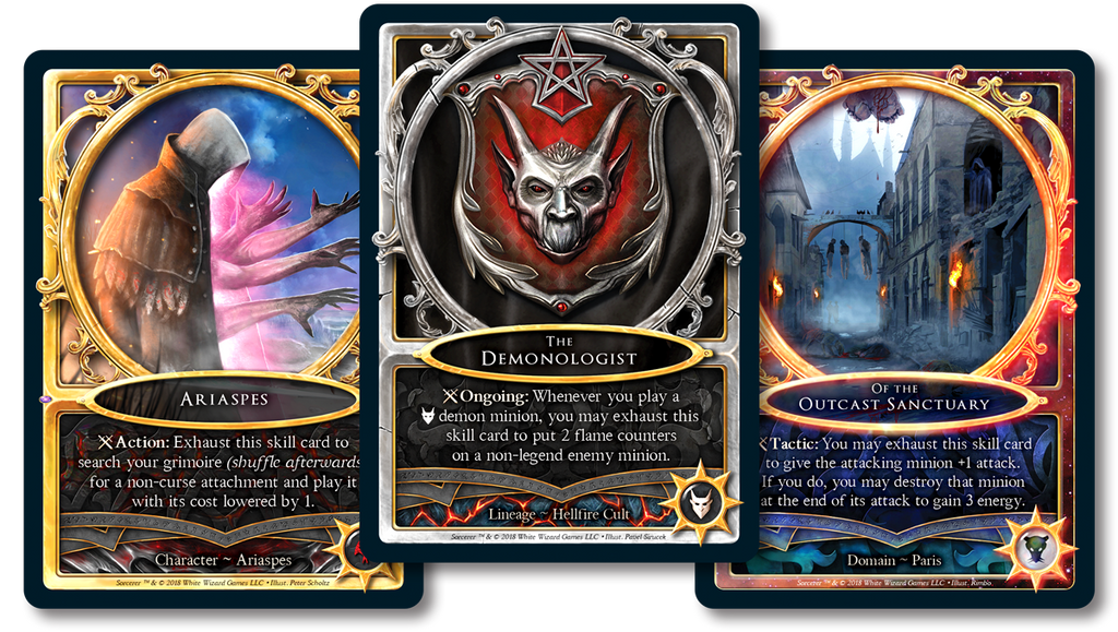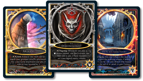 Each deck also comes with a skill card. Together, they show your true name. For example, you might be Ariaspes the Demonologist of the Outcast Sanctuary.