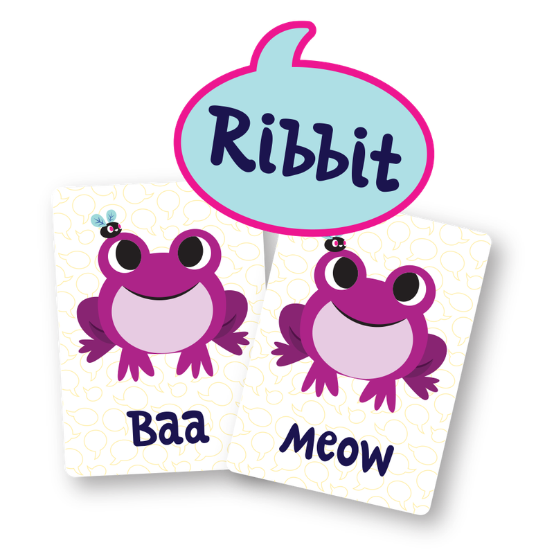 Sounds easy, except along with the picture, each card also has the sound a DIFFERENT animal makes written below it. If those sounds match, yell out the animal! Do you meow or moo? oink or call out pig? Can your brain keep up with your mouth to score the most points?