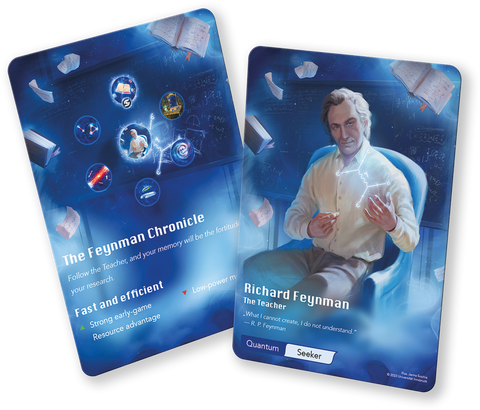 Draft your Seekers and immerse yourself in an elegant blend of resource management and strategic duels. Players lead the greatest minds in history in dynamic, deck-drafting battles, racing to complete the three stages of scientific discovery: Hypothesis, Evidence, and Conclusion. Players cycle through their decks three times to achieve victory ahead of their opponents.